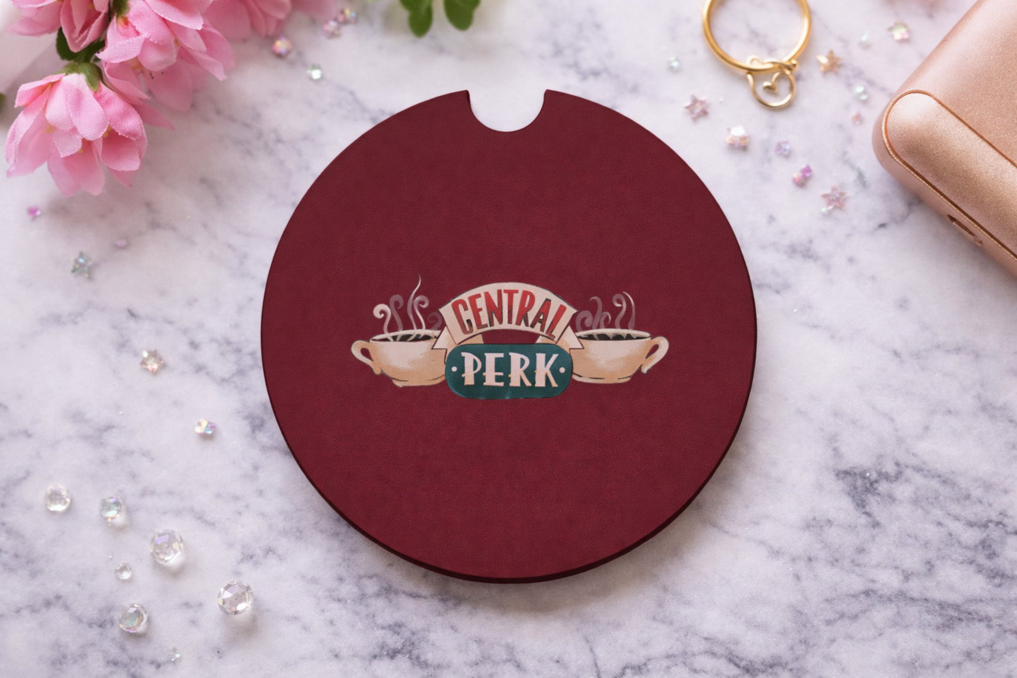 Bring cozy coffeehouse vibes into your space with this Central Perk–inspired coaster, perfect for fans of classic TV and caffeine lovers alike. Featuring a bold, high-quality design on a sleek round coaster, this piece adds personality to your coffee table, desk, or home bar while protecting surfaces from heat and moisture.