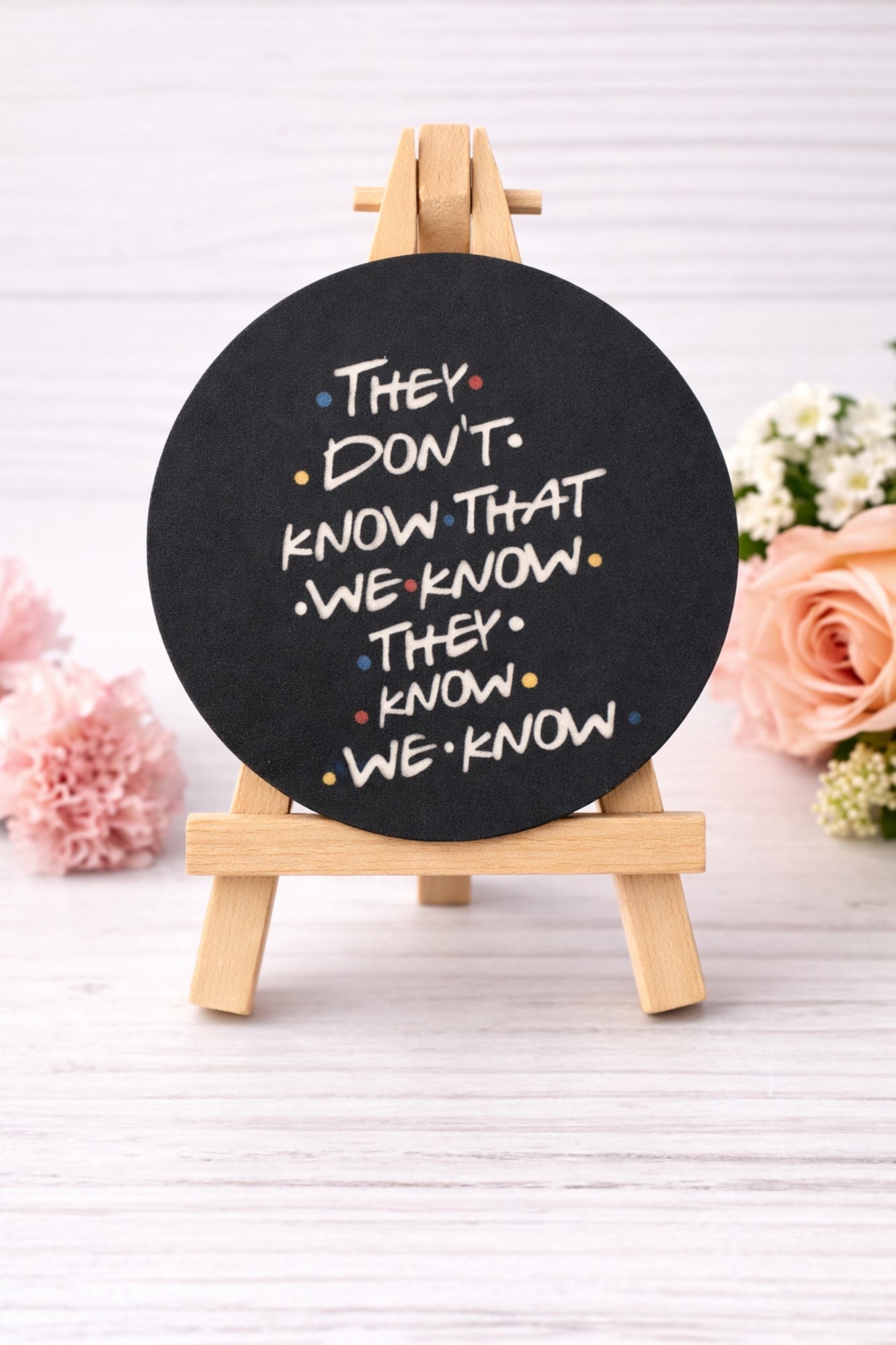 This black car coaster features the instantly recognizable phrase “They don’t know that we know they know we know”, bringing a fun, nostalgic touch to your daily drive.