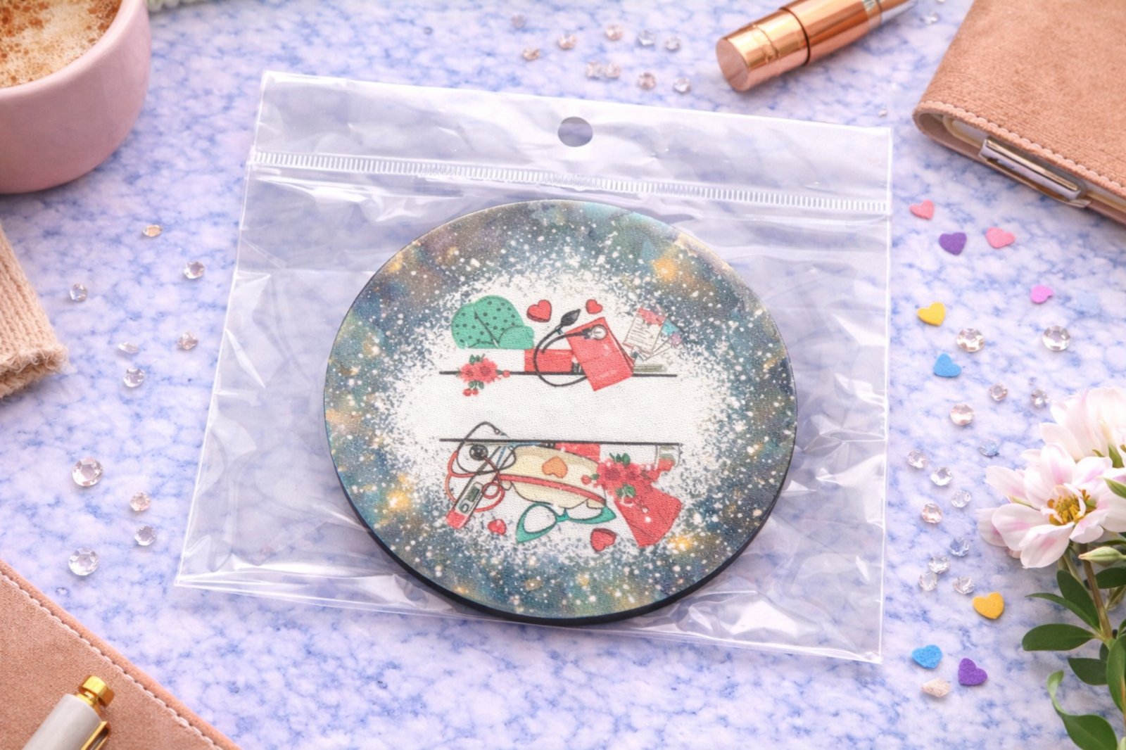 Show appreciation for the heart and dedication of nurses with this beautifully designed coaster. Featuring a charming nurse-inspired illustration with soft colors and heartfelt details, this coaster is a daily reminder of care, compassion, and strength.